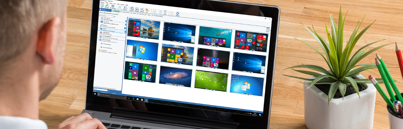 이 고유한 기능을 통해 사용자는 대상 시스템을 지속적으로 관찰하고 개입이 필요한지 즉시 식별 할 수 있습니다. 보기는 OS 유형, 네트워크 주소, WiFi 신호 강도 및 배터리 수명 (적절한 경우), 현재 로그온 한 사용자 및 쉽게 식별 할 수 있는 컴퓨터 이름과 같은 주요 시각 정보도 제공합니다. 사용자는 멀티 모니터 시스템에서 선택된 모니터를 볼 수도 있습니다.