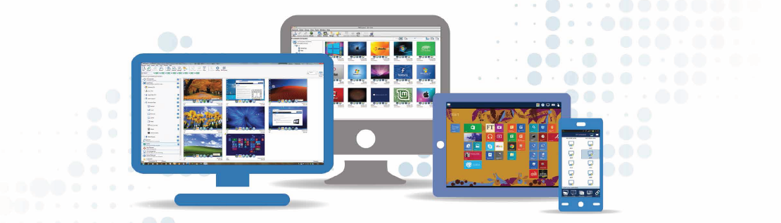 색상 깊이, 해상도 또는 운영체제와 상관없이 모든 PC의 화면, 키보드 및 마우스를보고, 공유하거나 제어하십시오.