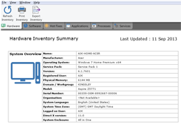 NetSupport Manager는 80개가 넘는 정보, 특히 각 PC의 하드웨어 또는 환경에 관한 정보를 수집합니다. 또한 현재 설치된 응용 프로그램의 전체 소프트웨어 인벤토리와 설치된 모든 OS 핫픽스가 제공됩니다.