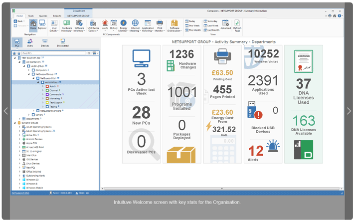 NetSupport DNA는 명확한 "환영"대시 보드에서부터 사용자 정의보기 및 내장 된 Crystal 보고서에 이르기까지 사용하기 쉽고 접근하기 쉽도록 설계되어 모든 기업 데이터를 완벽하게 볼 수 있습니다. 지원 쿼리 도구는 DNA 데이터베이스에 간단한 끌어다 놓기 창을 제공하므로 초보자도 수분 내에 사용자 지정 보고서를 만들 수 있습니다.