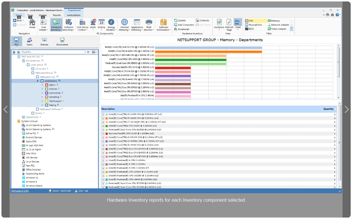 NetSupport DNA는 오늘날 시장에서 가장 광범위하고 자세한 하드웨어 인벤토리 모듈 중 하나를 제공합니다. 풍부한 정보가 CPU 및 BIOS 유형에서 네트워크, 비디오 및 저장 장치 정보에 이르기까지 각 장치에서 수집됩니다.