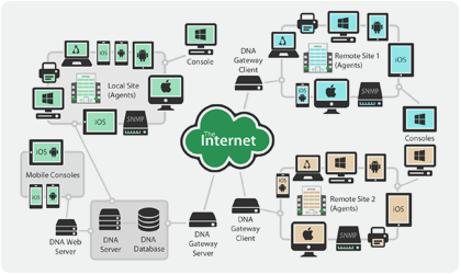 DNA 모듈에 정보를 관리하고 추가하는 데 사용되는 서버 모듈을 설치하면 제공된 배포 도구가 대상 장치에 DNA 클라이언트를 자동으로 검색하여 설치합니다. 마지막으로 DNA 콘솔 (IT 기술자가 설치)은 완전한 DNA 시스템 제어, 풍부한 화면 정보 및 실시간보고 기능을 제공합니다. 콘솔은 여러 컴퓨터에 설치할 수 있습니다.