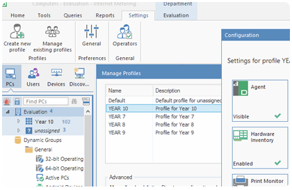 최대한의 유연성을 제공하고 시간을 절약하기 위해 NetSupport DNA를 사용하면 각각의 구성 요소 설정이 있는 여러 장치 또는 사용자 그룹 (예 : 부서 수준)에 대해 여러 프로필을 만들 수 있습니다. 즉, 전용 설정 (예 : 인터넷 액세스, 인쇄 계량 및 기타)을 특정 부서 (예 : 마케팅 (Facebook))에 적용 할 수 있습니다.
