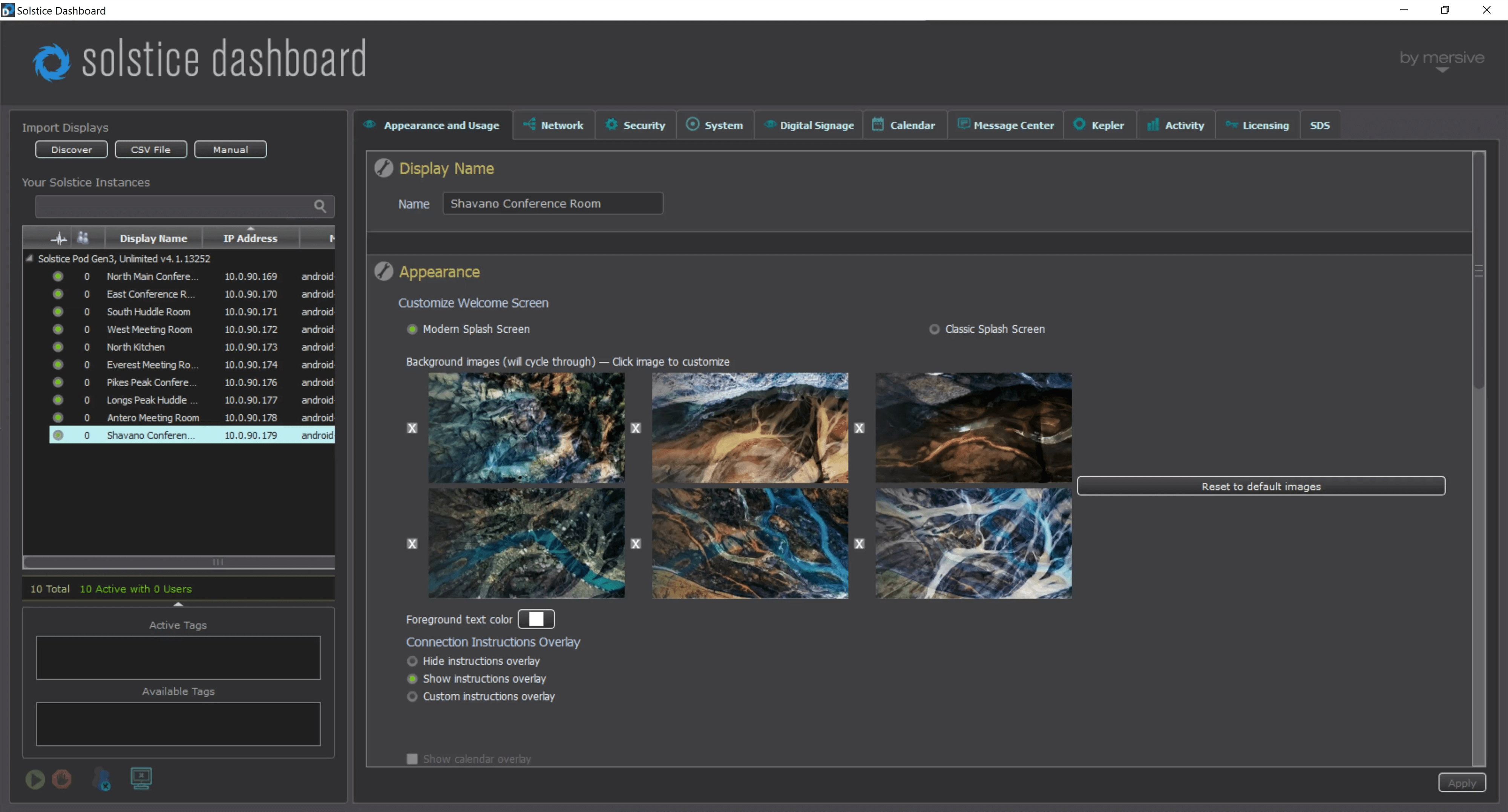 Solstice Dashboard를 사용하여 하나 또는 여러 개의 관리 워크 스테이션에서 호스트 네트워크의 모든 Solstice 엔드 포인트를 구성, 모니터링, 관리 및 제어할 수 있습니다.
