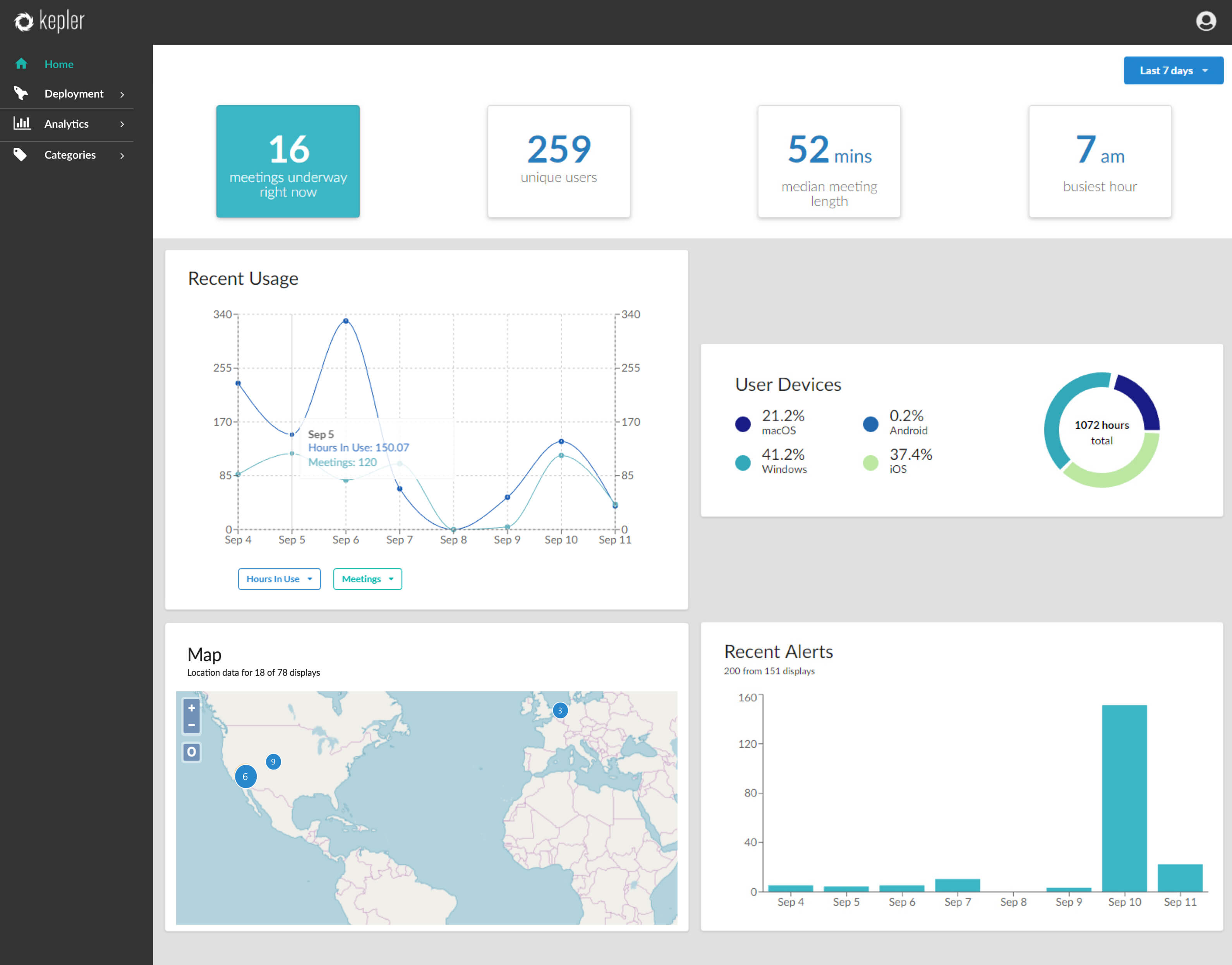 회의 분석 및 4K UHD 디스플레이 지원에서 디지털 사이의 재생 및 회의실 일정 통합에 이르기까지 Solstice 플랫폼은 사용자 채택을 향상시키고 기술 스택을 향상시킵니다.